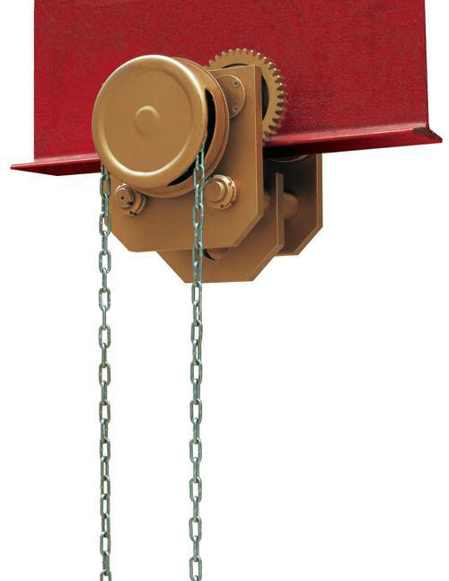 防爆手拉單軌行車的結構簡單、重量輕盈,使用的時候將輕小型防爆起重機械鉤掛在防爆手拉單軌小車上即可,通過手拉的方式驅動,就能夠在具有一定弧度的工字鋼跑道下翼邊緣上運行了。